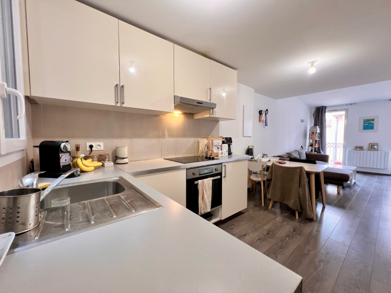 L’appartement se compose d’une pièce de vie avec cuisine ouverte sur le séjour, offrant un espace agréable et fonctionnel.