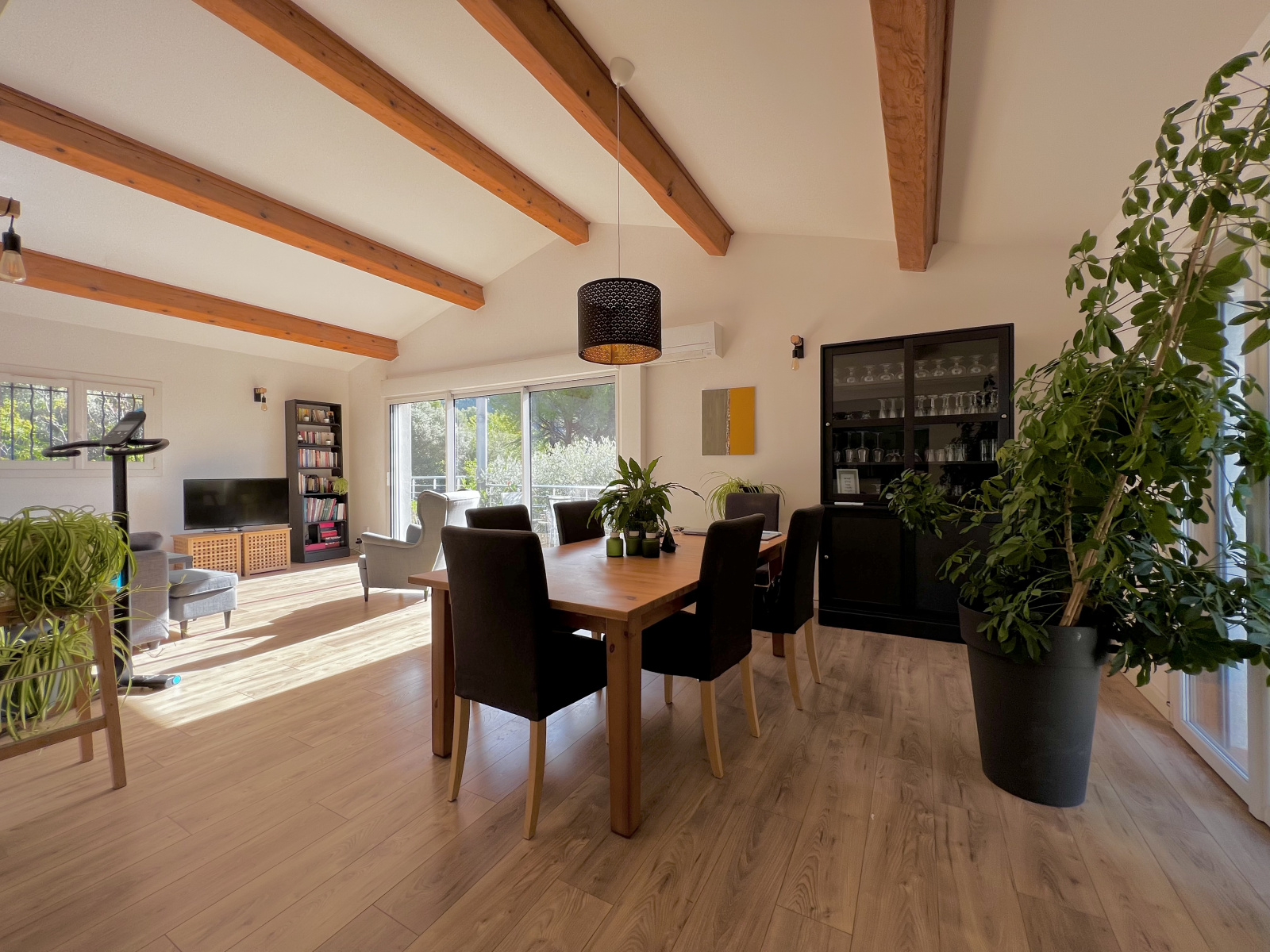 VENDU Un véritable cadre de nature et une splendide vue dégagée vers le Faron pour cette maison bâtie de façon tradtiionnelle en 1988, entièrement rénovée et isolée en 2020. Ce bien bénéficie d'une superficie habitable de 140m2 sur un terrain arboré d’env. 630m2. En Rez de chaussée se trouve une très belle pièce à vivre de plus de 55m2 avec une cuisine équipée ouverte sur le séjour et son plafond cathédrale, une large baie vitrée vient prolonger cet espace sur une agréable terrasse en surplomb du jardin. Le niveau inférieur comprend 4 chambres dont une suite parentale avec dressing / SDE et WC - une salle d'eau - un WC et une buanderie. Plusieurs places de stationnement possible au sein du jardin / Copropriété de deux lots avec une mitoyenneté au nord, sans charge à prévoir / évacuation des eaux usées par fosse septique / Climatisation réversible dans toutes les pièces / Double vitrage. Quelques précisions sur les alentours: Bus et boulangerie à 200m / les écoles des Moulins se situent à moins d’1 km, les commerces de la Chapelle à 1,5km / Accès rapide vers les axes routiers et autoroutiers. Nombreuses randonnées au départ de la maison. Un bien très agréable à vivre pour ceux qui souhaitent bénéficier d’un cadre champêtre et d’une situation au calme sans être éloigné des commodités.
