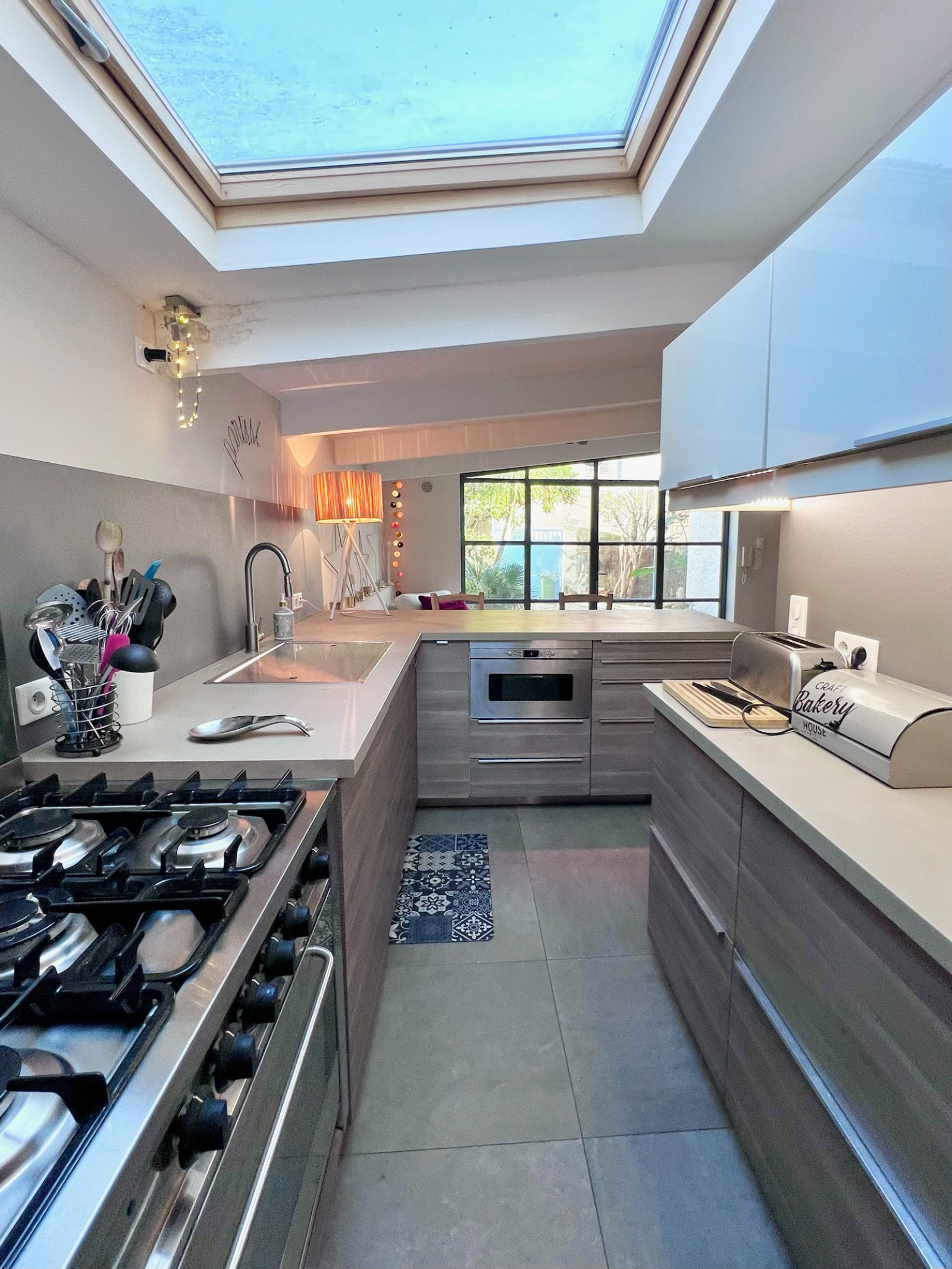 La maison se développe sur trois niveaux, pour une surface de 120 m² Loi Carrez (environ 140 m² au sol), avec une distribution fluide et fonctionnelle.
