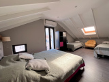 À l’étage, l’espace nuit se compose de deux chambres, d’un dressing et d’une salle d’eau avec WC. Les combles aménagés offrent une grande pièce polyvalente, pouvant accueillir une chambre, un bureau ou une salle de jeux, avec un coin salle d’eau, un WC et des rangements sous pentes.