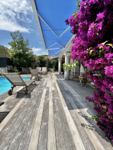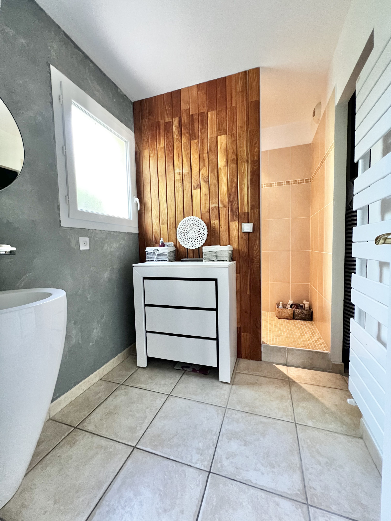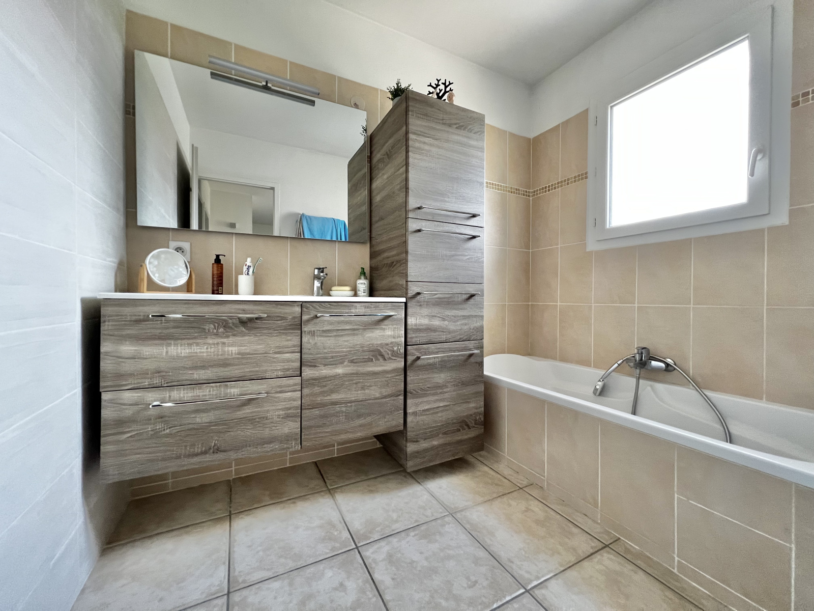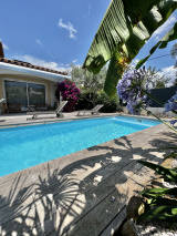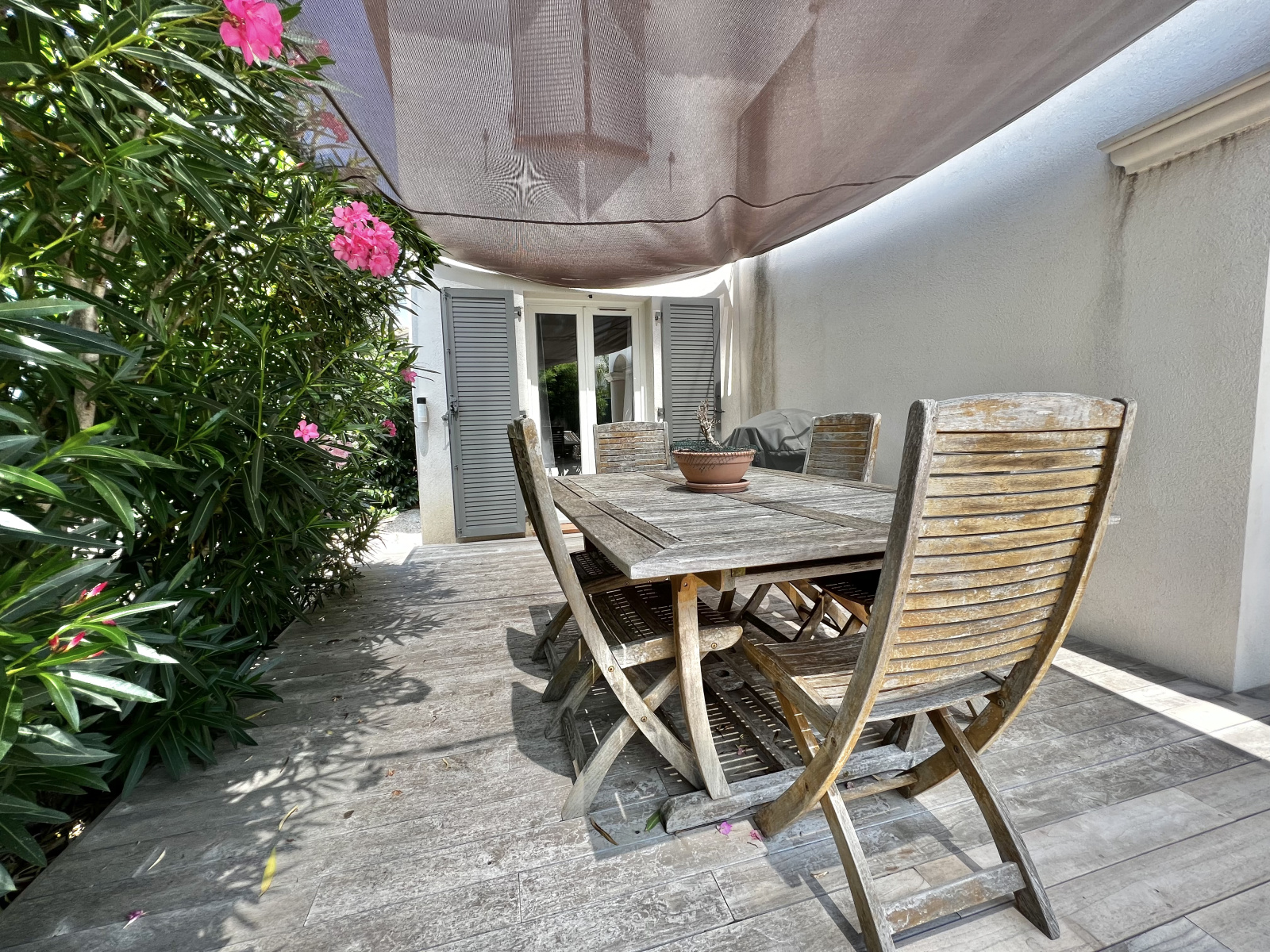 CE BIEN A ETE VENDU Une situation agréable dans le secteur calme et privilégié de Sainte-Marguerite, recherché pour son côté pavillonnaire, familial et très plaisant à vivre. Édifiée sur un terrain plat et arboré, cette jolie maison d’architecte à été bâtie de façon traditionnelle en 2007. Parfaitement entretenue par ses propriétaires, elle dispose d'une superficie habitable de 105m2 et bénéficie de nombreuses prestations de qualité. Son niveau de plain-pied est composé d'une belle entrée, une grande pièce à vivre de 45m2 répartie entre une cuisine entièrement équipée, un coin dinatoire et le séjour - une chambre parentale avec dressing et salle de bains, un WC avec lave-mains. À l'étage, deux chambres dont une ayant accès à un solarium - une salle de bains et un WC. L'ensemble des pièces donne sur le jardin et bénéficie d'une exposition plein sud, sans aucun vis à vis. Entièrement clôturé, le jardin de 437m2 à été joliment paysagé par de nombreuses espèces méditerranéennes et des murets en pierres sèches, permettant ainsi un entretien facile. L’espace piscine bénéficie d’une magnifique terrasse en teck, à l’abri des regards. Ce bien clés en mains dispose également d’un grand garage. Vous apprécierez l’usage pratique de cette maison et les nombreuses choses qu’on peut y faire à pieds, les commerces, les écoles, le parc fraîchement rénové de Sainte marguerite ou encore les plus jolies criques se trouvent à quelques minutes de marche. Un bien rare dans ce secteur si convoité.
